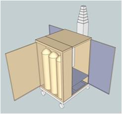 - cabinet/cart design to accommodate five bottle fuel wing recommended for extended run time.